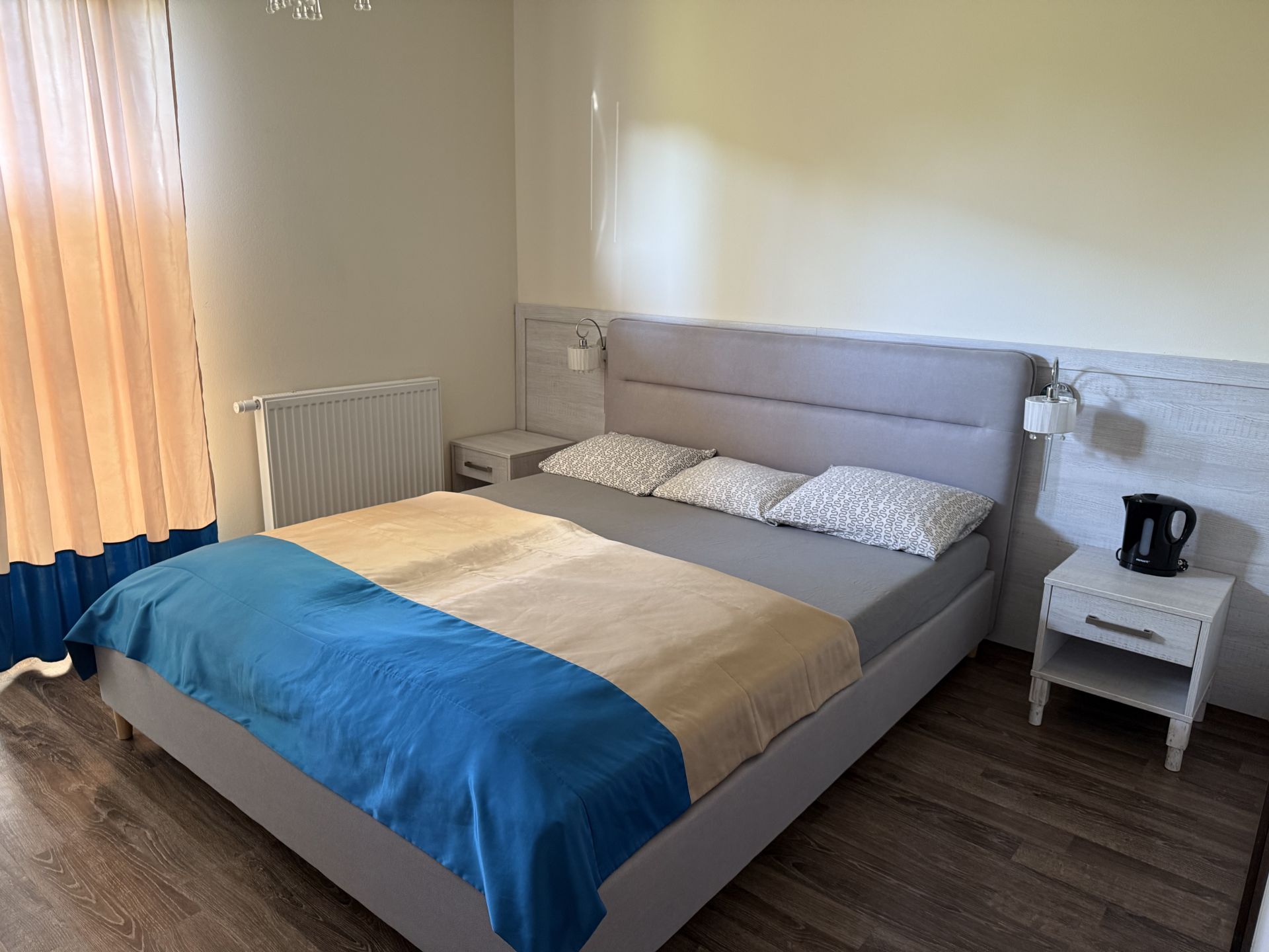 - duże łóżko dwuosobowe i jedno pojedyncze lub dwa łóżka jednoosobowe połączone wraz z dodatkową dostawką ale jest również wariant trzech osobnych łóżek jednoosobowych