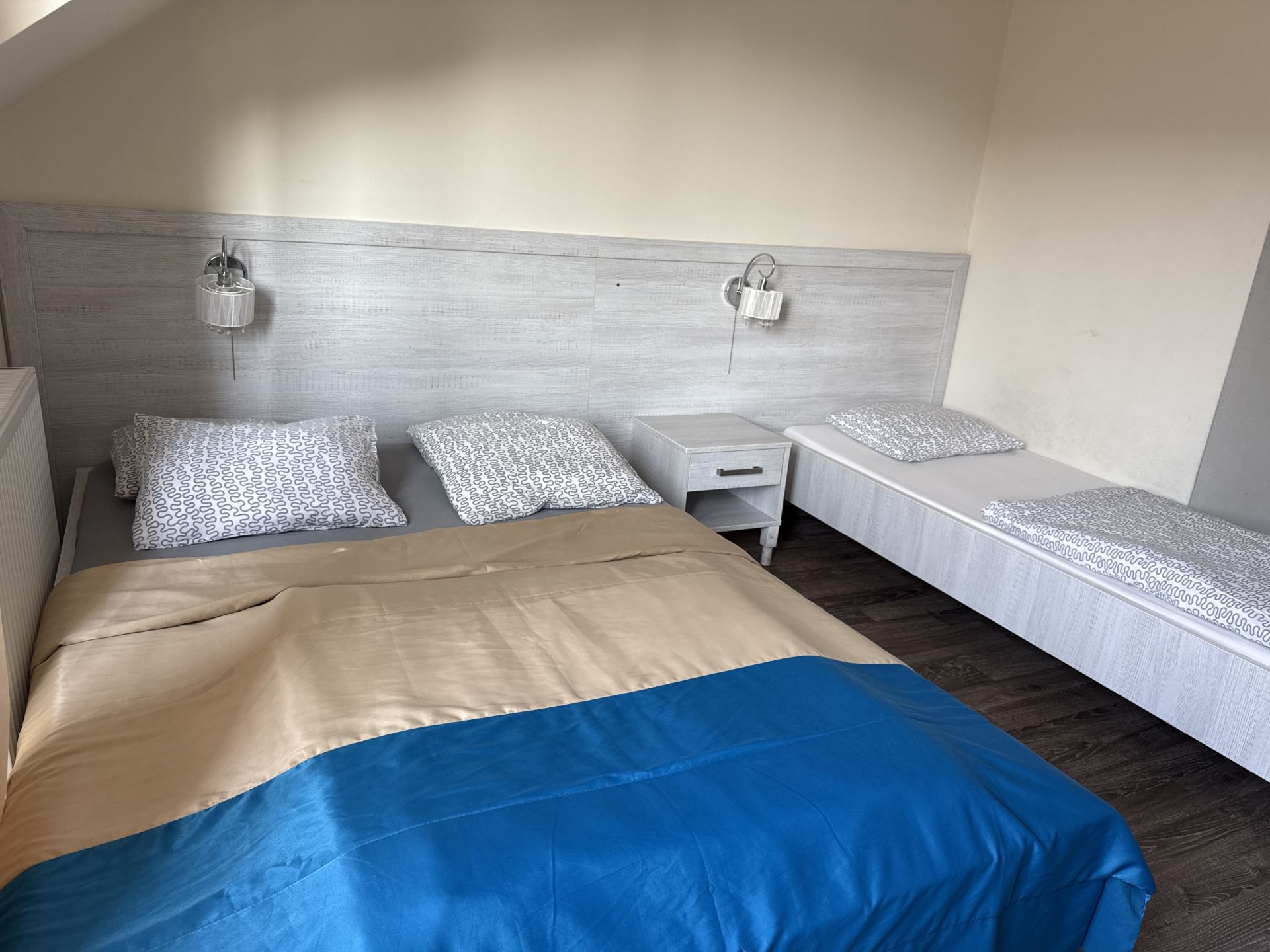 Pokój trzyosobowy oferuje przestronne wnętrza, duże i wygodne łóżko (lub dwa łóżka jednoosobowe), ciekawą łazienkę oraz balkon z krzesłąmi i stolikiem na poranną kawę. Wszystkie pokoje posiadają miejsce do pracy, zabawy i wypoczynku oraz darmowy dostęp do bezprzewodowego internetu.